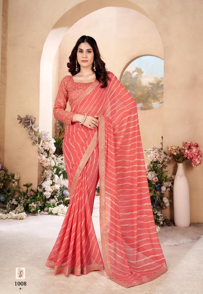 ชุดส่าหรีงานปักสวยงาม น้ำหนักเบา สไตล์เลเฮริยา สำหรับผู้หญิง