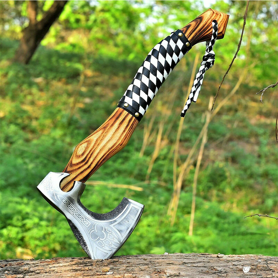 ขวานเหล็กคาร์บอนสูงหัวขวานไวกิ้งขวานเหล็กกล้างานทำมือพร้อมด้ามจับไม้ใช้งานในการตัด
