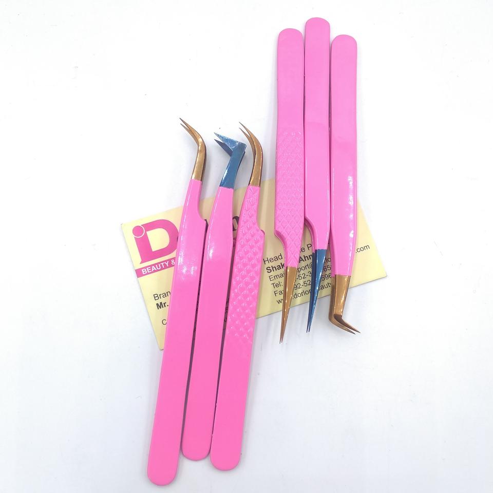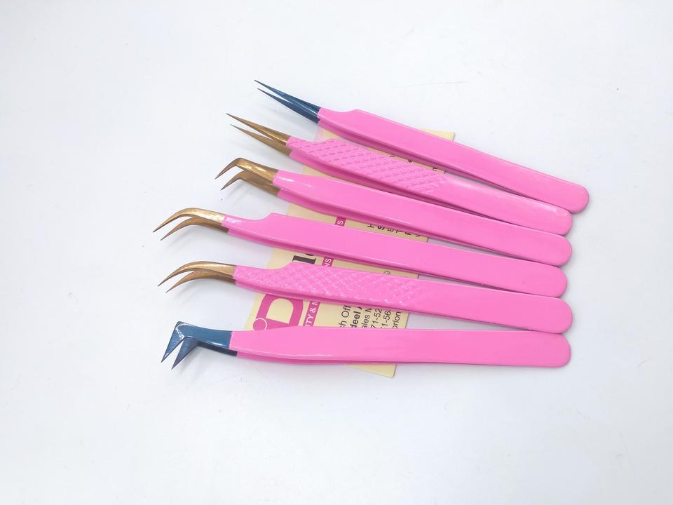 แหนบปลายขนตาพลาสม่าสีชมพูแหนบเคลือบสำหรับขนตาแหนบปลายโค้งรูปตัวแอลแหนบต่อขนตาเพิ่มวอลลุ่ม