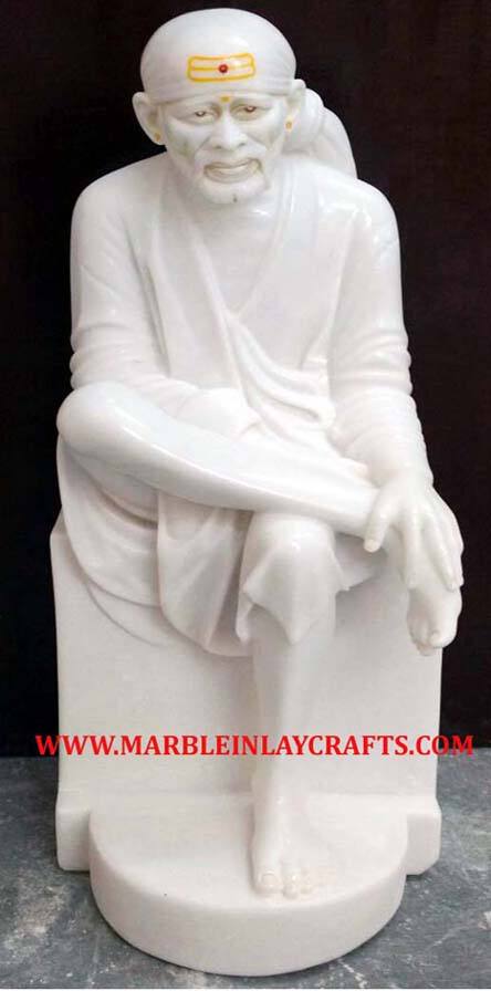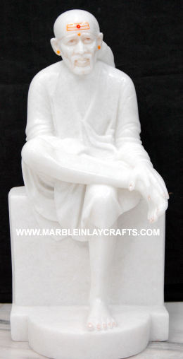 Beautiful Indian Exporter New Design Handmade White Marble Sitting Sai Baba Statue With Temple Worship And Hindu Culture Statue
