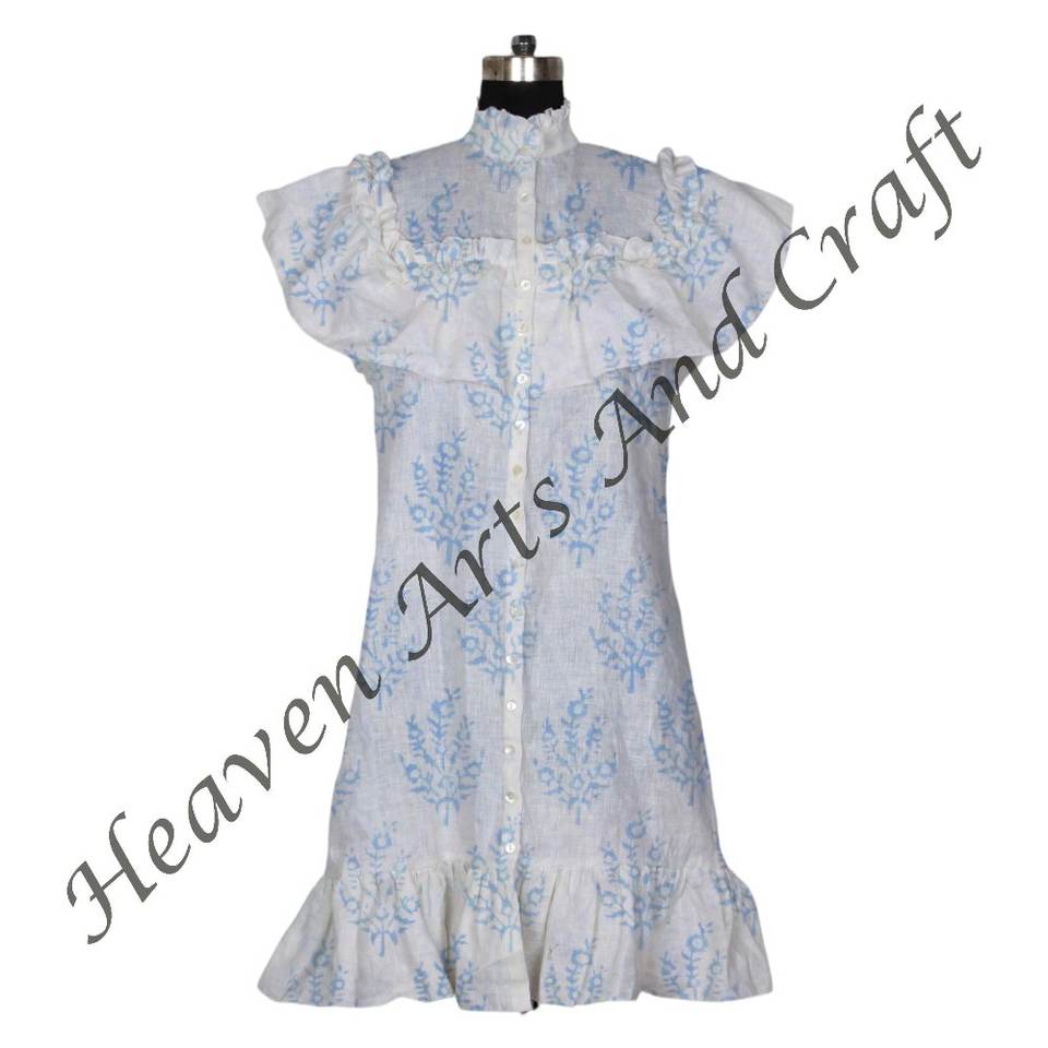 เดรสผ้าคอตตอนพิมพ์ลายบล็อกมืออินเดียสวยเดรสสั้นสำหรับผู้หญิงเดรสลำลองมิดิโบโฮ