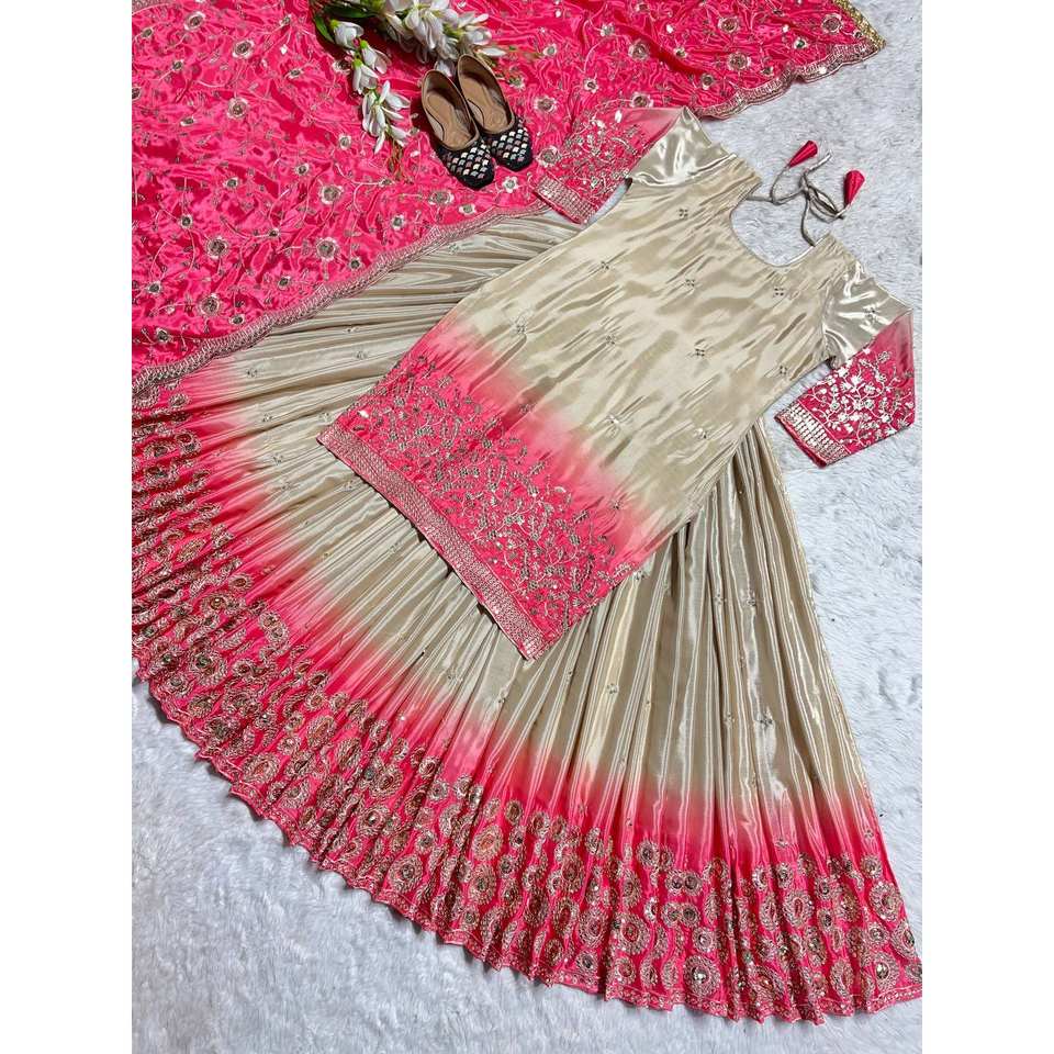 ชุดอินเดียและปากีสถานสวยงาม เสื้อและกางเกงประดับด้วยผ้าดูปัตตา สำหรับงานปาร์ตี้