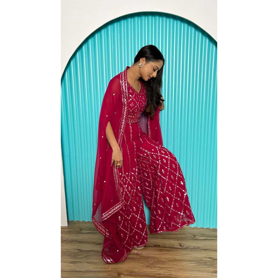 ชุดเสื้อผ้าอินเดียและปากีสถานสวยงาม แบบเสื้อและกางเกง (โคติ) ประดับด้วยงานปักดิ้นและงานปักด้ายลายกระจก