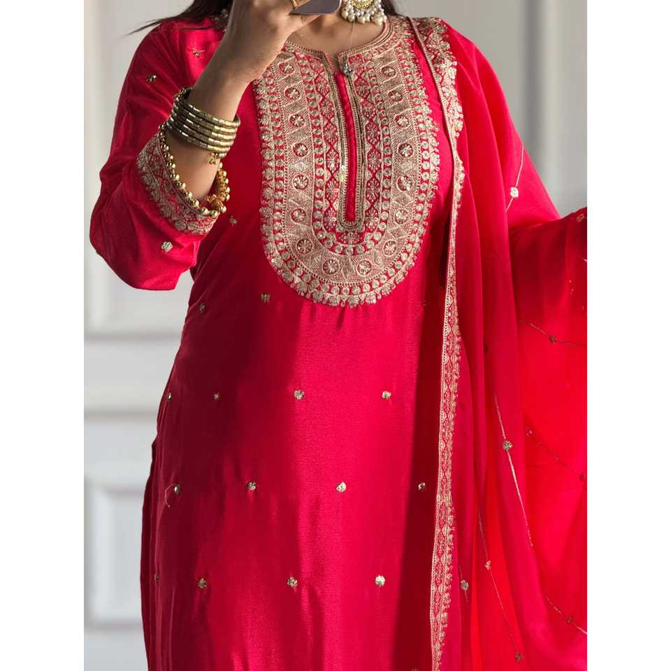 ชุดงานเลี้ยงสวยงามสไตล์อินเดียและปากีสถาน เสื้อและกางเกงพร้อมผ้าคลุมไหล่แฟนซี