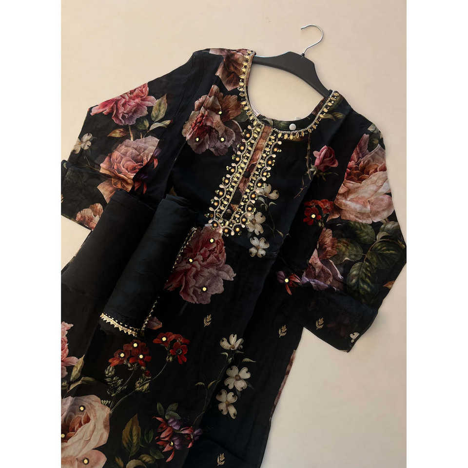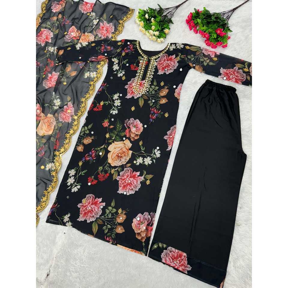 ชุดงานเลี้ยงสวยงามสไตล์อินเดียและปากีสถาน พร้อมกางเกงพลลาซโซและผ้าคลุมไหล่