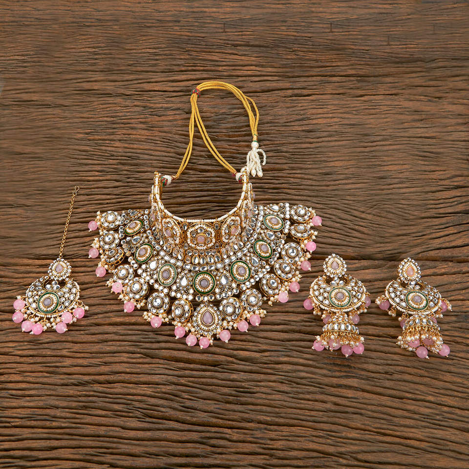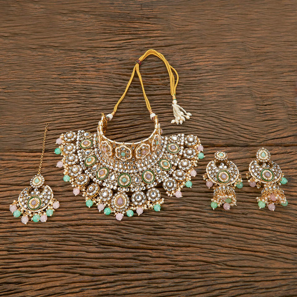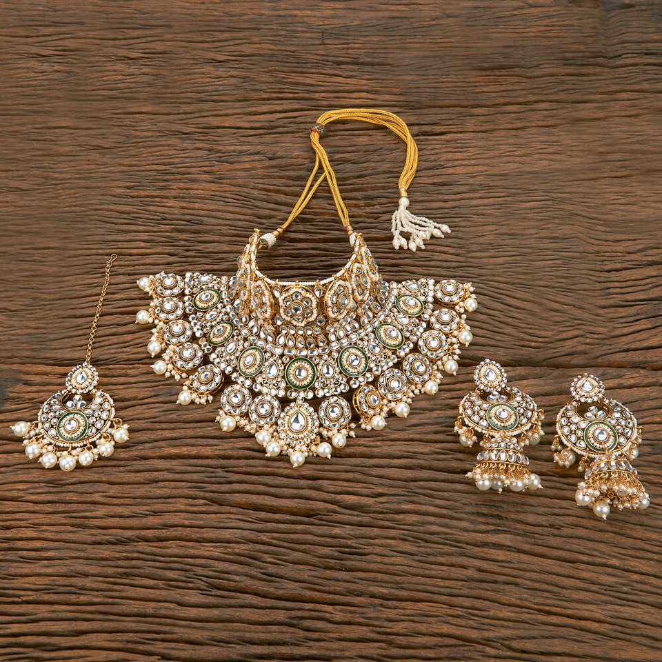ชุดสร้อยคอ Mukut ทรงลูกปัดอินโดเวสเทิร์นที่สวยงามพร้อมการชุบทองทองเหลืองเพื่อลุคเจ้าสาว