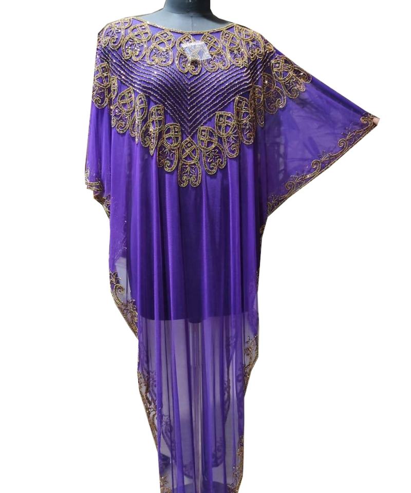 คำอธิบาย:มือลูกปัด Kaftan กับเย็บปักถักร้อยขอบทั้งหมดของการแต่งกาย