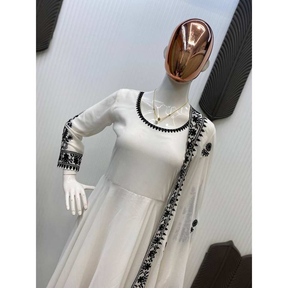 ชุดราตรีอนาร์คาลีสีขาวสวยกับดูแพตตาแฟนซีสำหรับงานปาร์ตี้และโอกาสพิเศษขนาด L