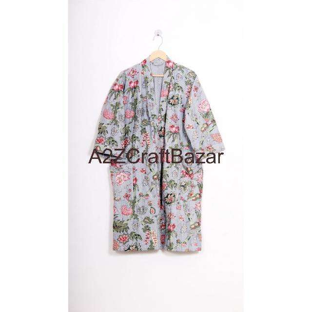 ชุดคลุมสไตล์กิโมโนผ้าฝ้าย 100% งานปักมือลายดอกไม้หลากสีสัน งานเย็บปะติดปะต่อสวยงามสำหรับสุภาพสตรี