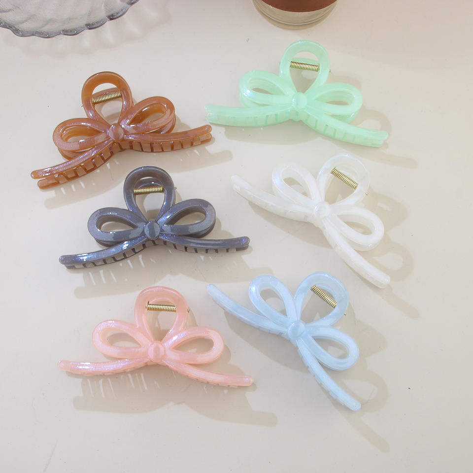 กิ๊บติดผมโบว์สีชมพูเจลลี่ขนาดใหญ่ 13 ซม. ดีไซน์ใหม่สไตล์เกาหลี ทำจากพลาสติกเรซิ่นรีไซเคิล สวยงาม น่ารัก ไม่แตกหักง่าย