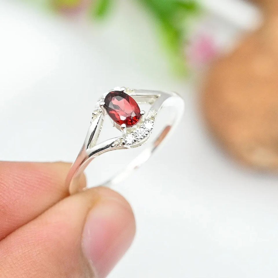 แหวนหมั้นเพชร CZ โกเมนดีไซน์ล่าสุดสวยงาม925เงินแท้เครื่องประดับแบบเรียบง่ายของขวัญวันครบรอบแต่งงานแหวนเธอ