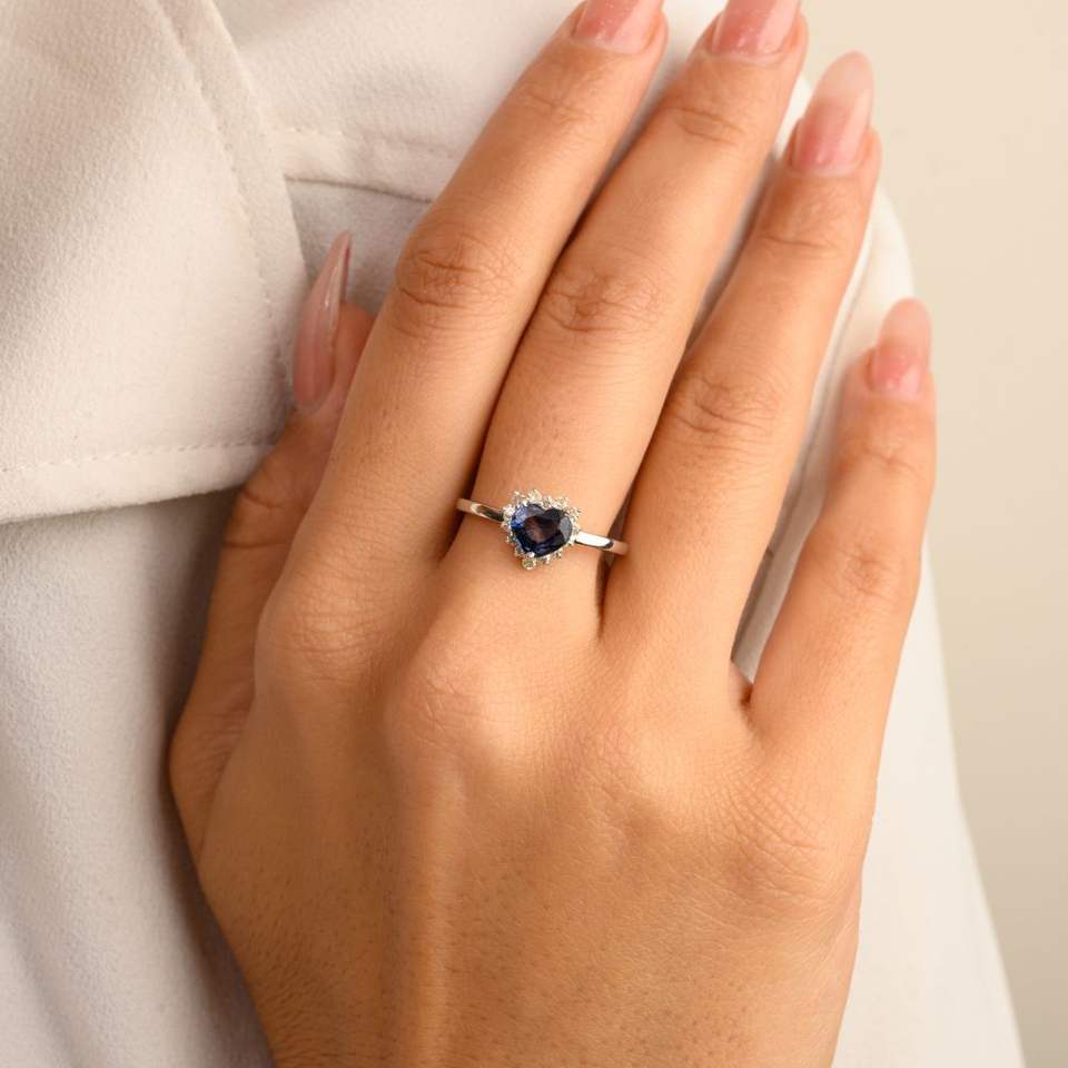 แหวนแซฟไฟร์สีขาวทอง14K ของสะสมรูปหัวใจธรรมชาติทำด้วยมือของสะสมสุดหรู