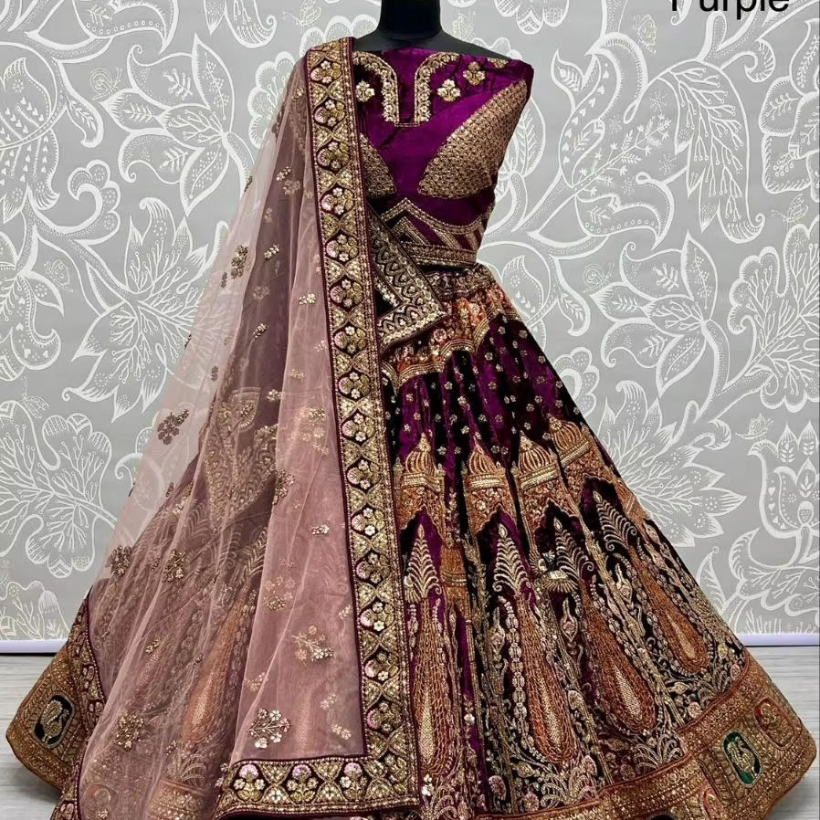 Lehenga choli ที่สวยงามด้วยด้ายและงาน dori