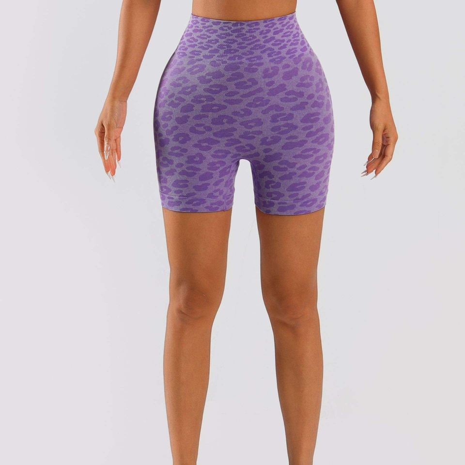 กางเกงขาสั้นโยคะเอวสูงไร้รอยต่อพิมพ์ลายเสือดาวสวยงามสะโพกกระชับพอดีตัว XL สามจุดเอวยางยืดลำลองเบอร์มิวดา