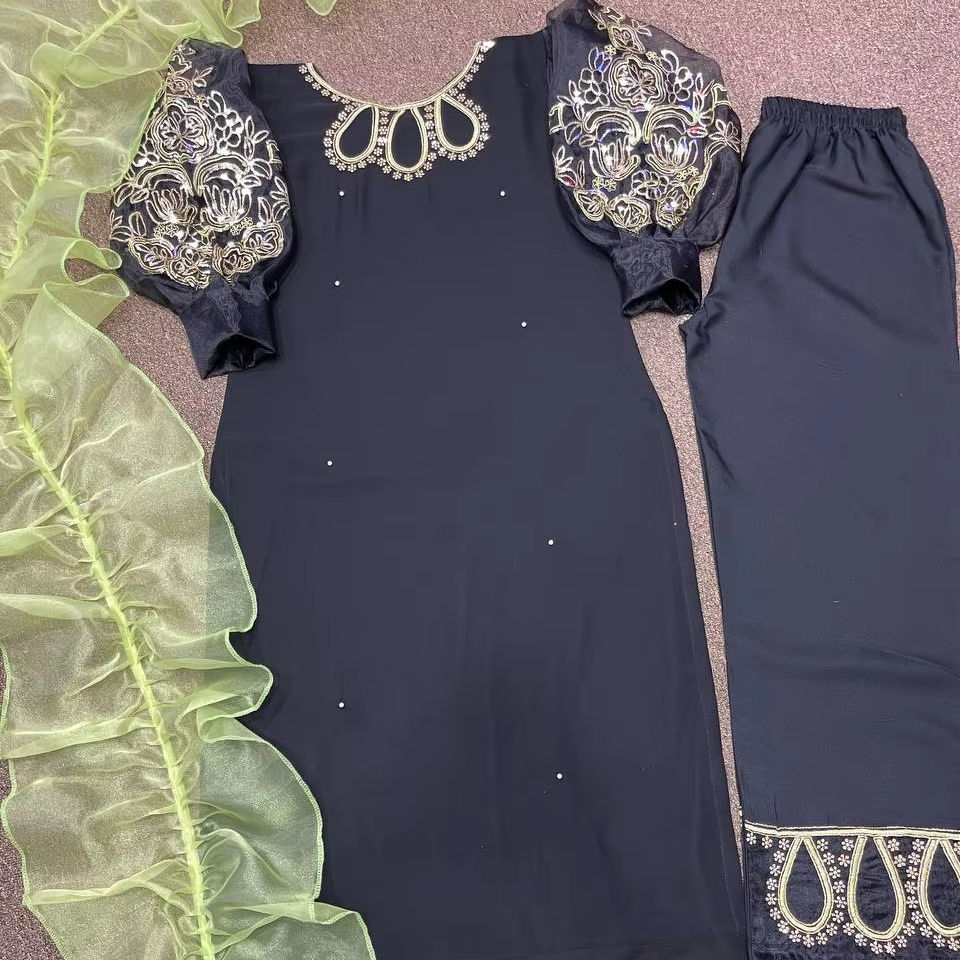 Kurti-BOTTOM ยาวที่สวยงามพร้อม dupatta กับงานปัก