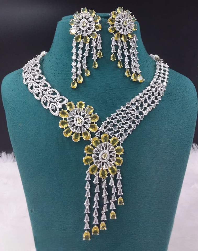 สร้อยโชคเกอร์ประดับด้วยพลอยสังเคราะห์แอ็ดเซอร์โคเนีย AD Hydro จากหินธรรมชาติพร้อมต่างหูชุดปาร์ตี้สำหรับผู้หญิงดูสวยงาม
