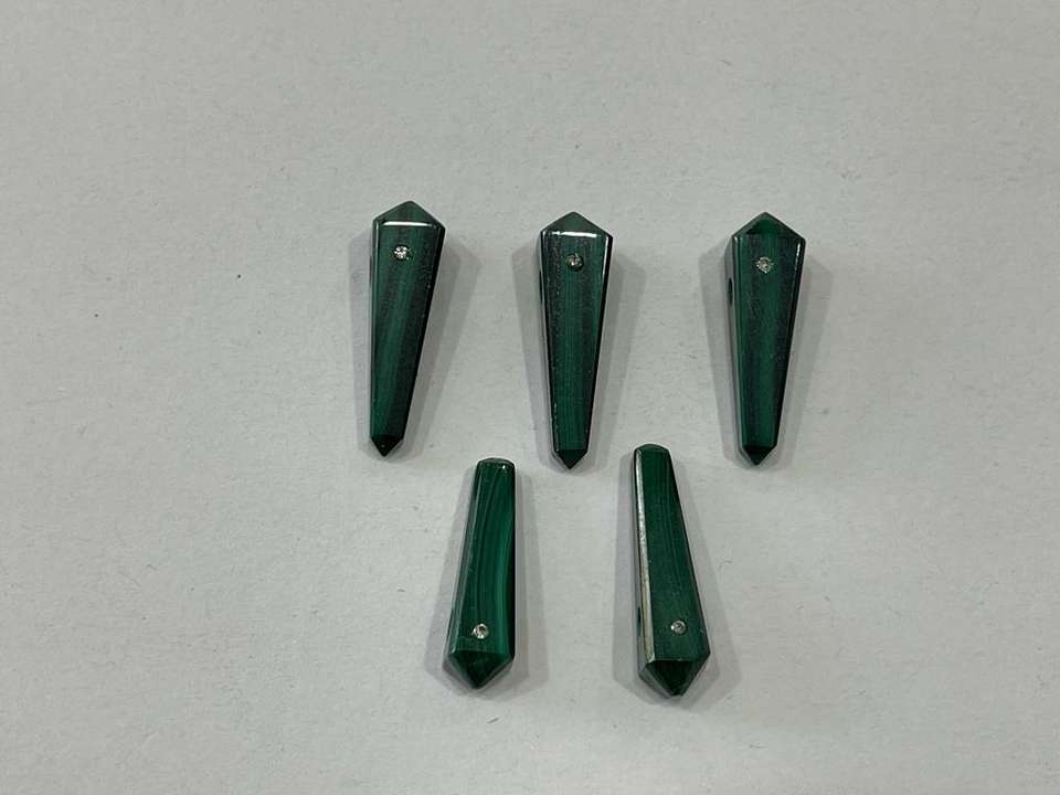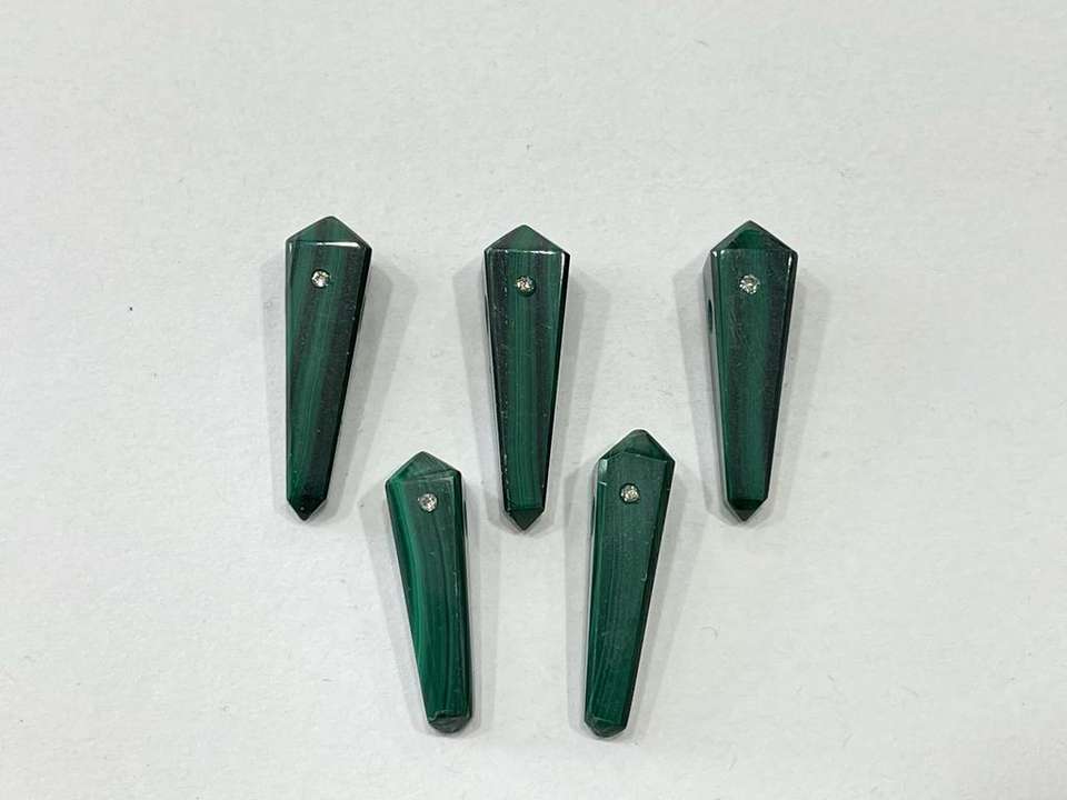 จี้ทรงดินสอมาลาไคต์ทรงหลวมที่สวยงามพร้อมกระดุมเพชรธรรมชาติ