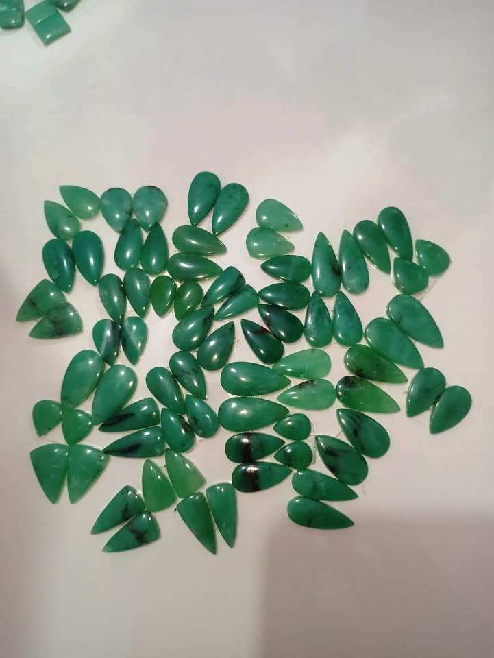 ลูกปัดควอตซ์สีเขียวเรียบธรรมชาติคู่ลูกปัดคู่สีเขียวคริโซเพรสสีเขียวธรรมชาติ