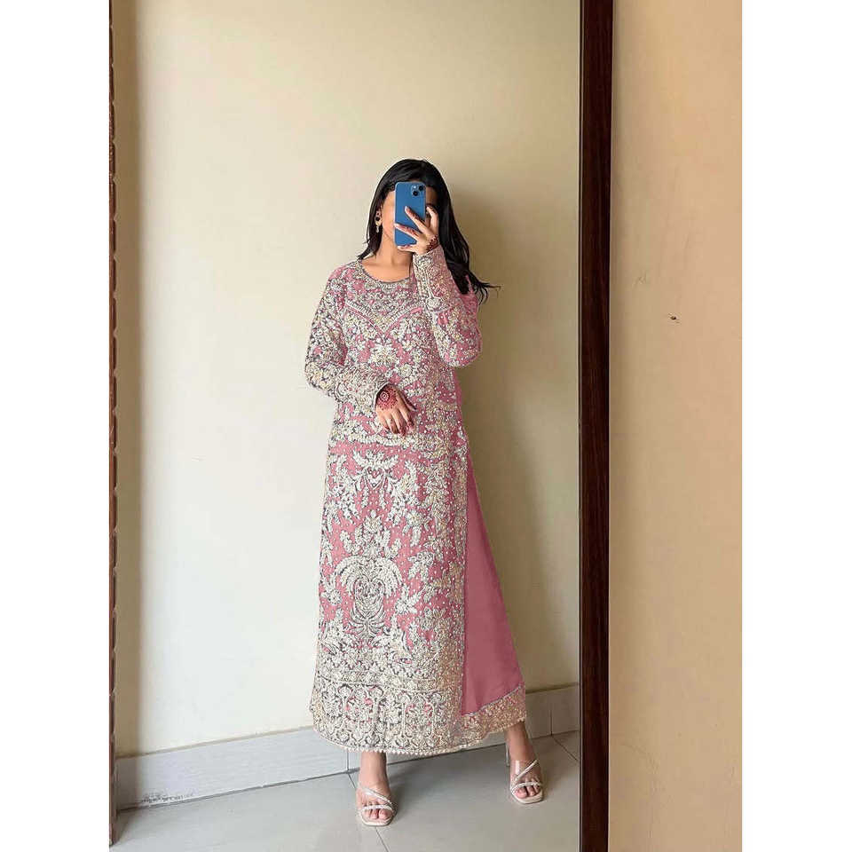 เสื้อทรงหลวมสวยงามผ้าจอร์เจตต์ พร้อมกางเกงพลัสโซ่ ผ้าชีฟองพิมพ์ลายดอกไม้ ประดับเพชรด้วยงานฝีมือ แฟชั่นลายดอกไม้