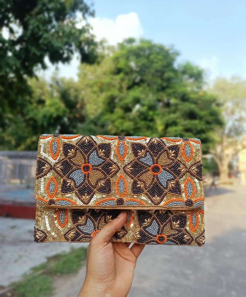 คลัทช์ลูกปัดงานทำมือแบบอินเดียหรูหราสวยงามแฟชั่นสำหรับงานแต่งงานงานเลี้ยงตอนเย็น