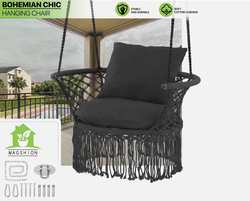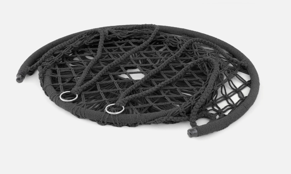 Macrame ที่สวยงามเปลเชือกผ้าฝ้ายสีดำขนาดใหญ่เปลญวนเก้าอี้แกว่งเบาะสะดวกสบายเป็นมิตรกับสิ่งแวดล้อมทำด้วยมือเฟอร์นิเจอร์กลางแจ้งที่ทันสมัย