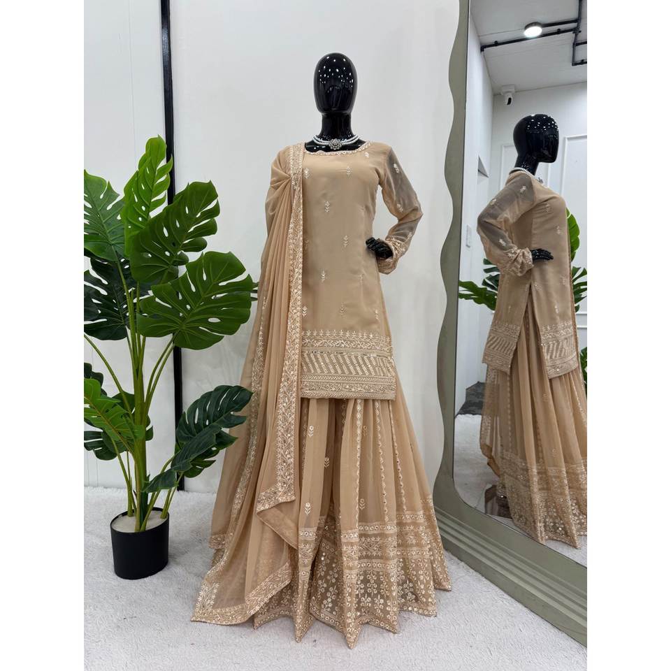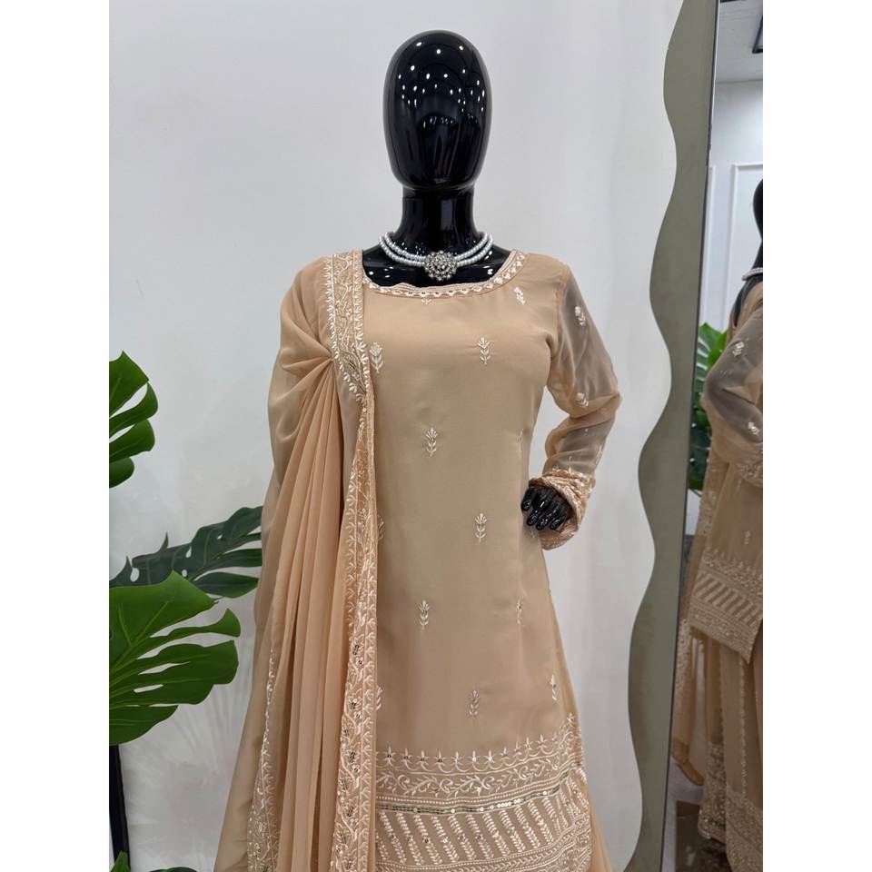 ชุดราตรีที่สวยงามเจียมเนื้อเจียมตัวด้านบนด้านล่างและ dupatta สำหรับสวมใส่งานปาร์ตี้ที่มีสไตล์