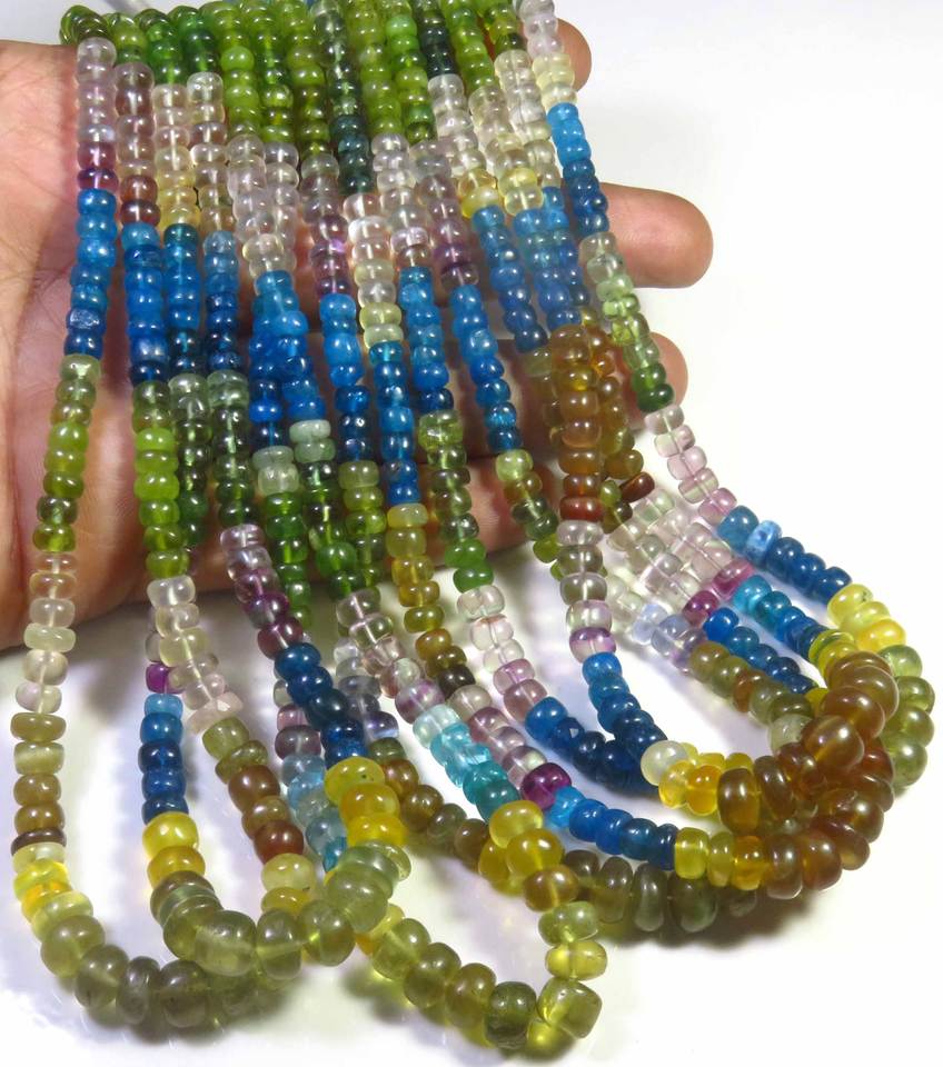 ลูกปัดอพาไทต์หลากสีสวยงาม ขนาด 16 นิ้ว ลูกปัดอพาไทต์ธรรมชาติเจาะรูตรงกลาง ขนาด 4.5-7.5 มม. ลูกปัดรอนเดลล์เรียบเนียน สำหรับทำเครื่องประดับ