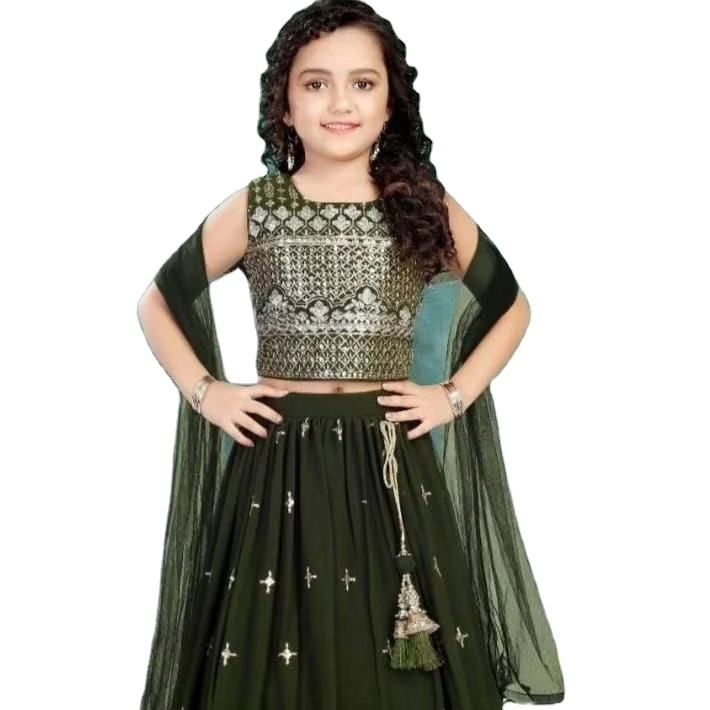 ชุดเดรสผ้าจอร์เจียเเบบเทียมปักเลื่อมลายสำหรับเด็กชุดกระโปรงปาร์ตี้วันเกิด