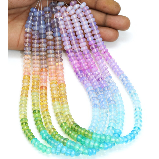ลูกปัดควอตซ์ทรงกลมสีเรียบหลากสีสวยงามขนาด7-8มม. ลูกปัดหินควอทซ์สีผสมสีเรียบคุณภาพ AAA