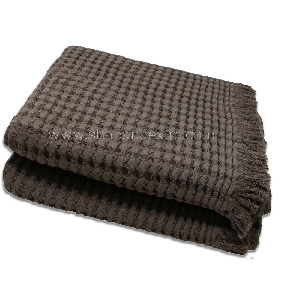 ผ้าห่มโซฟาสีมัสตาร์ดสวยงาม ลายรังผึ้ง พกพาสะดวก น้ำหนักเบา ตกแต่งด้วยชายครุย ผ้าห่มลายวาฟเฟิลสำหรับเตียง
