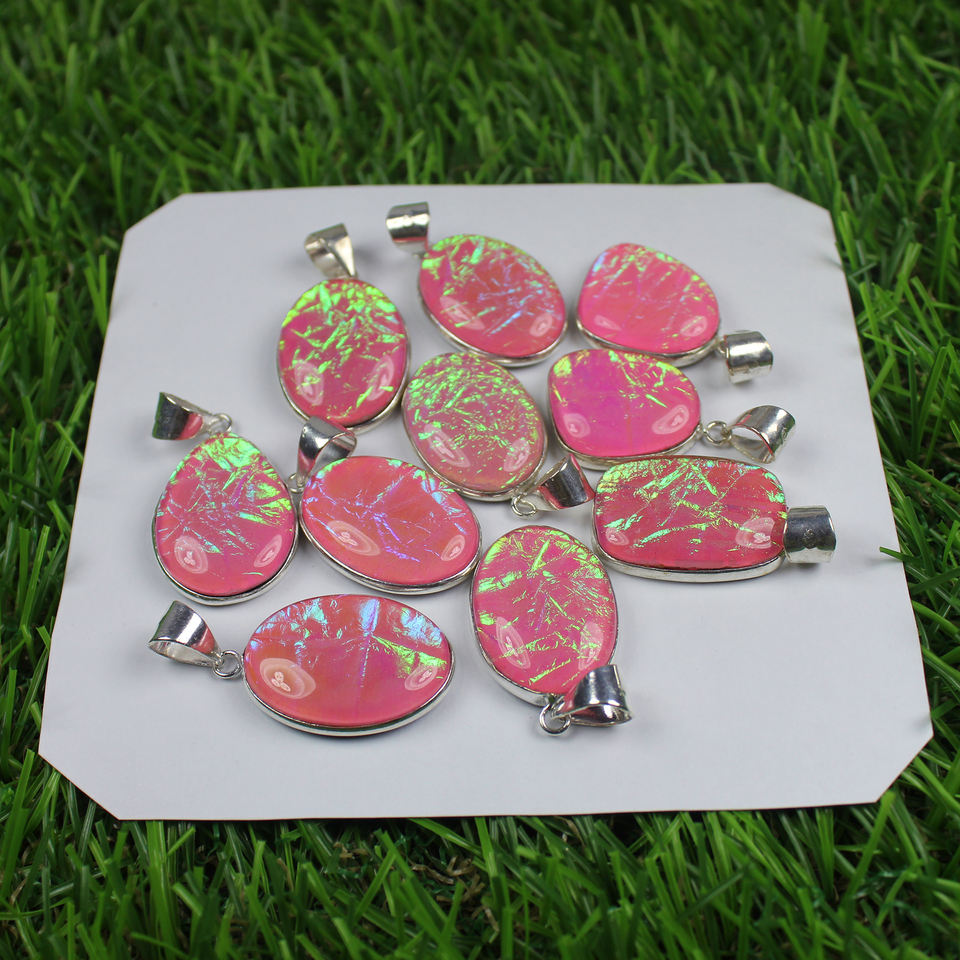 ที่สวยงามธรรมชาติโอปอลออสเตรเลียฝาจี้เครื่องประดับสร้อยคอชุบเงินโอปอลออสเตรเลียจี้จำนวนมาก