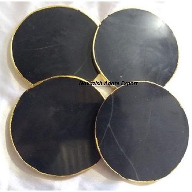 ที่รองแก้วหินอาเกตสีดำธรรมชาติที่สวยงามพร้อมขอบทองขายส่งจานรองแก้วคริสตัล
