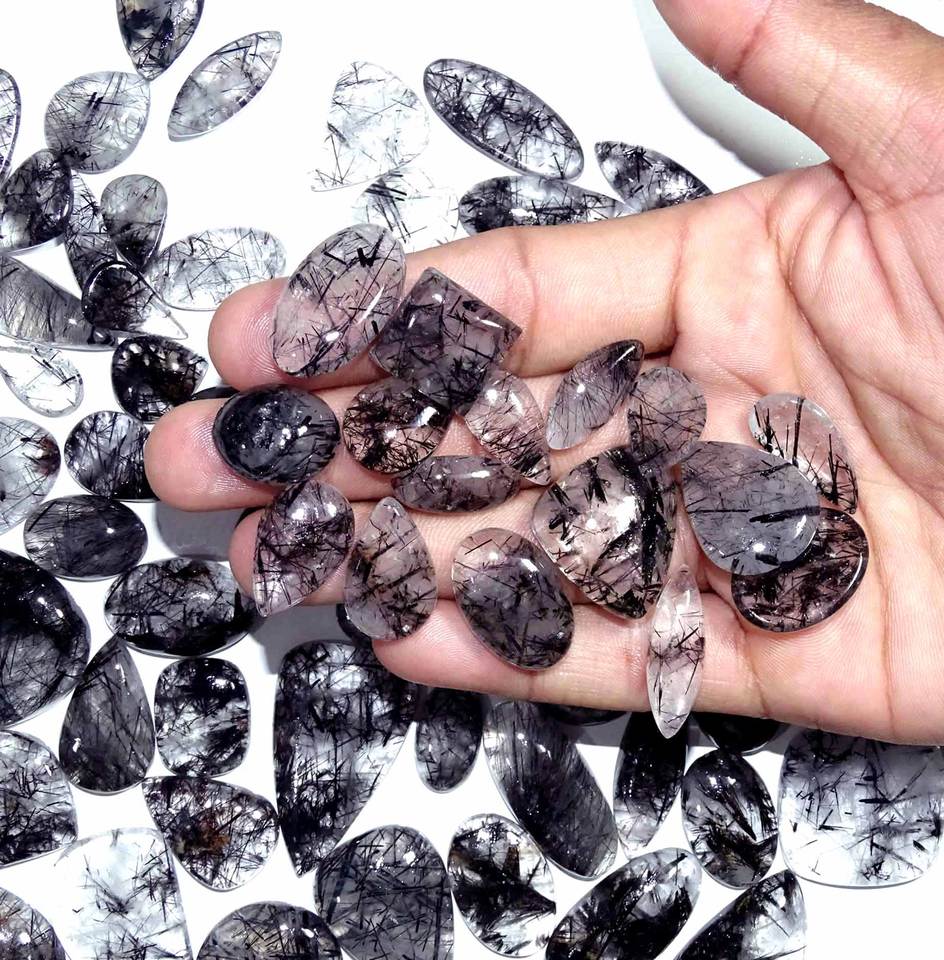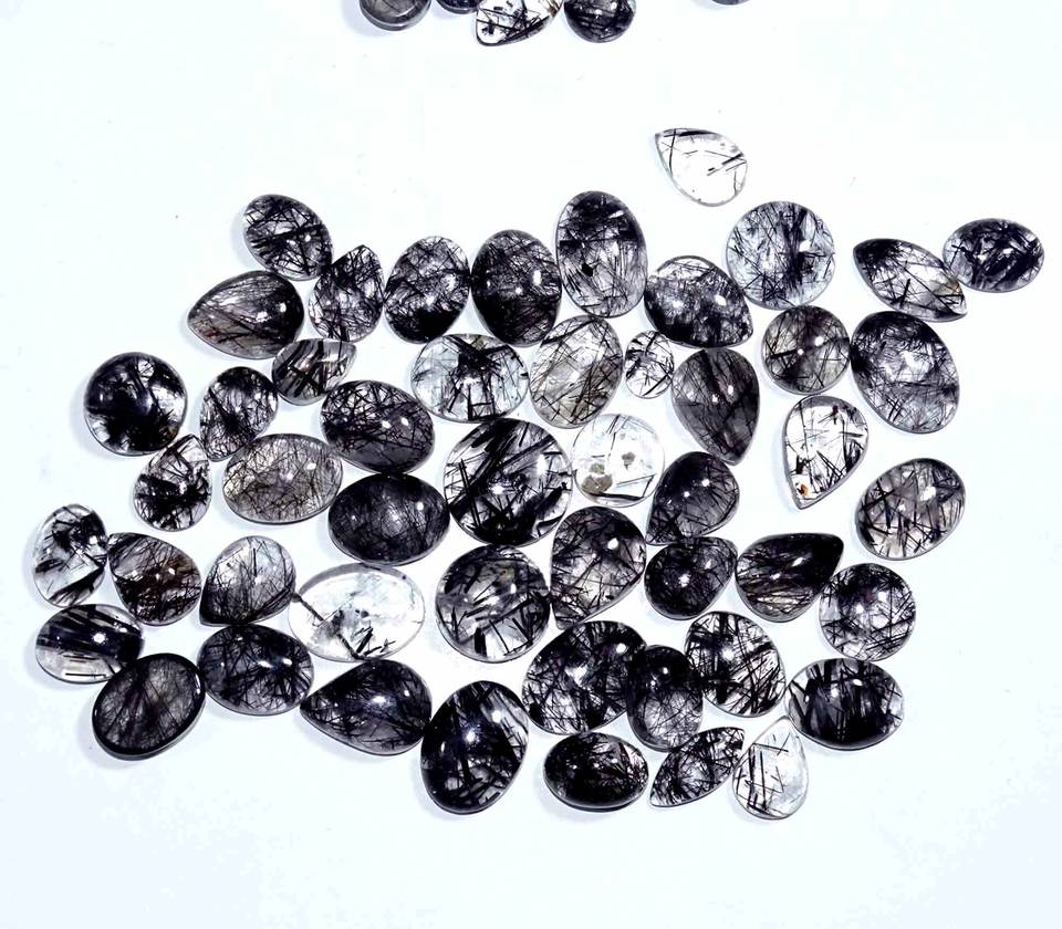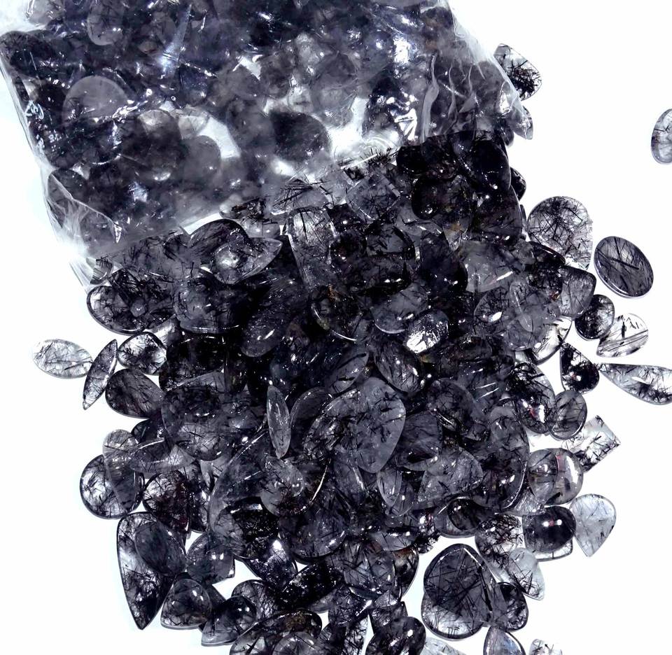 พลอยควอตซ์เจียระไนแบบพลอยสีดำธรรมชาติที่สวยงามอัญมณีควอตซ์หลวมรูปทรงผสมและขนาดขายส่งสำหรับทำเครื่องประดับ
