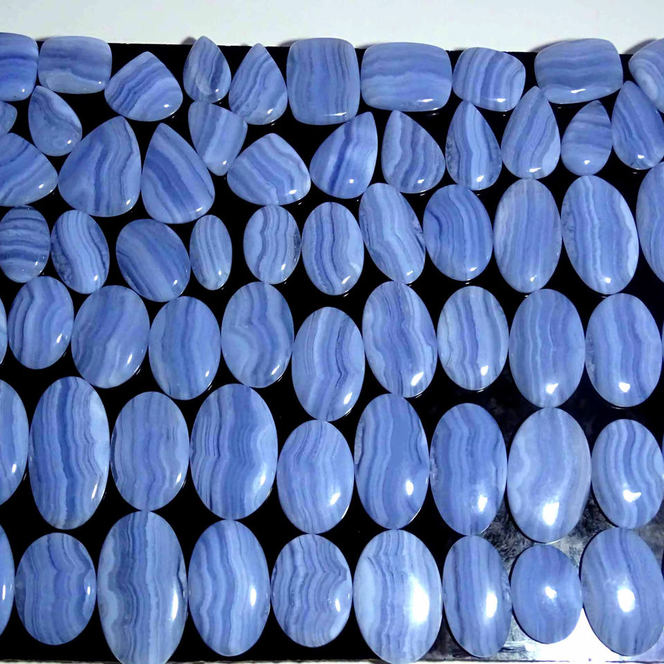 เครื่องประดับอัญมณีควอตซ์อัญมณีหลวมสีฟ้าลูกไม้สีฟ้าธรรมชาติที่สวยงามมีรูปร่างและขนาดที่หลากหลายขายส่งสำหรับการทำเครื่องประดับ