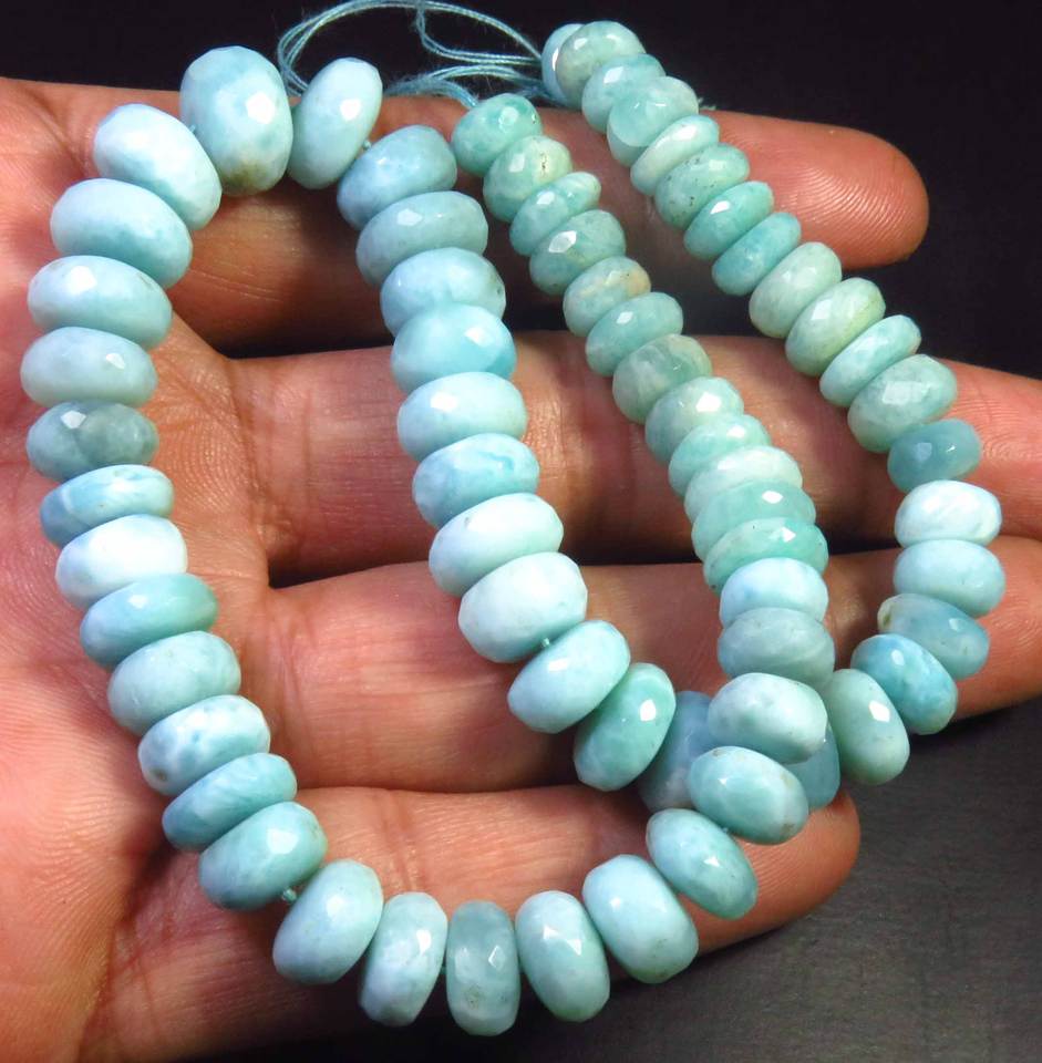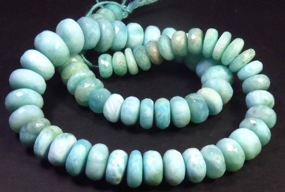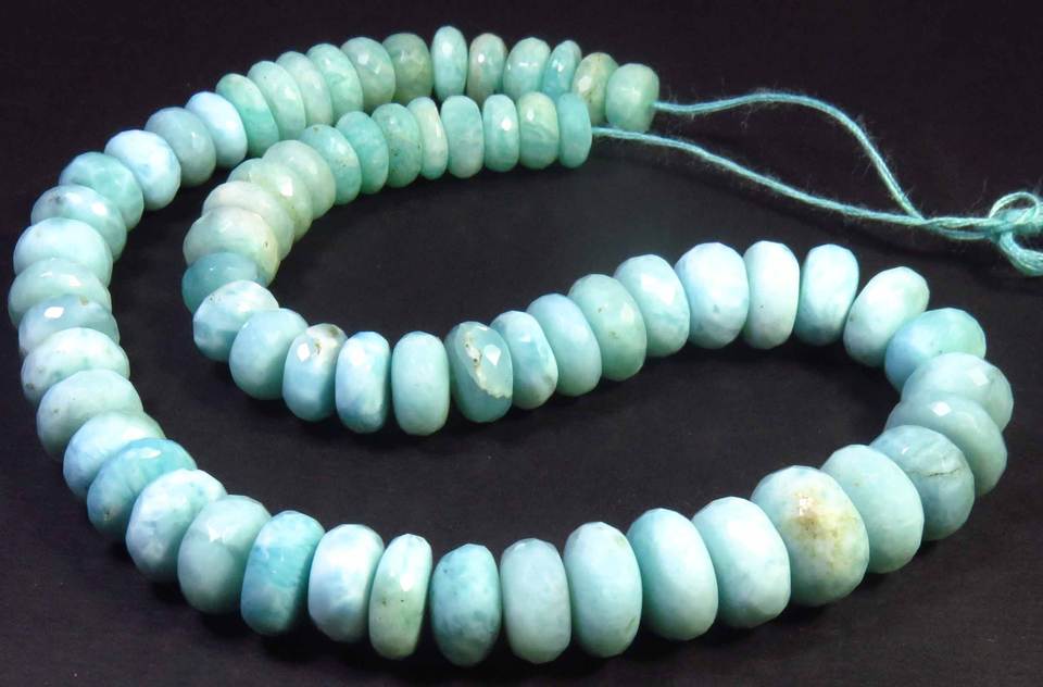 ลูกปัดพลอยลาริมาร์ทรงรอนเดลล์สีน้ำเงินธรรมชาติสวยงาม ขนาด 7-11 มม. ความยาว 12 นิ้ว แบบเจียระไนเหลี่ยม จาก Gems Valley