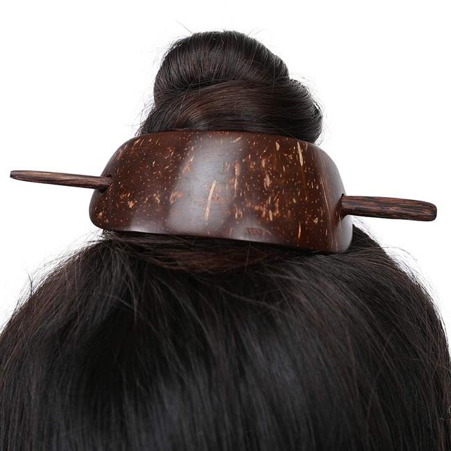 กิ๊บติดผมกะลามะพร้าวธรรมชาติสวยงามพร้อมด้ามจับของขวัญที่ยอดเยี่ยมสำหรับสุภาพสตรีในงานปาร์ตี้