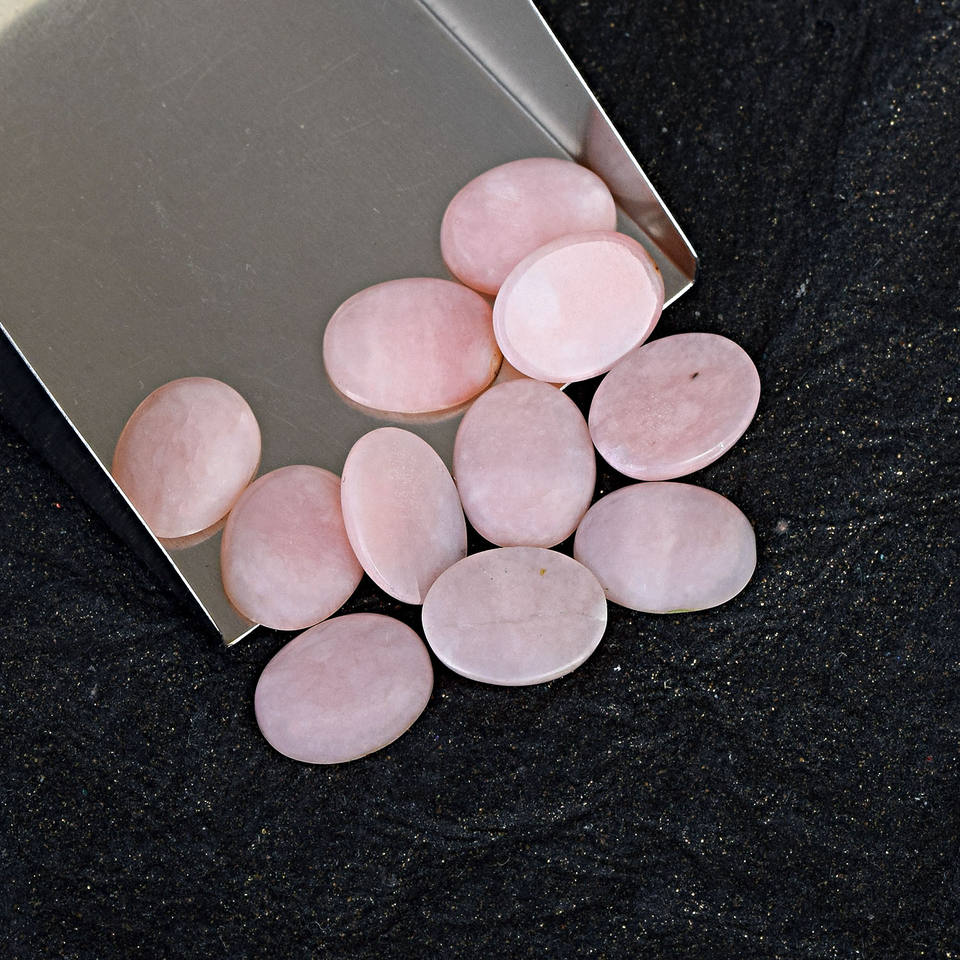 พลอยโอปอลสีชมพูเจียระไนแบบธรรมชาติอันสวยงามพลอย9X7มม. พลอยรูปไข่ทรงหลังเบี้ยตัดอัญมณีสำหรับการทำเครื่องประดับที่ดี