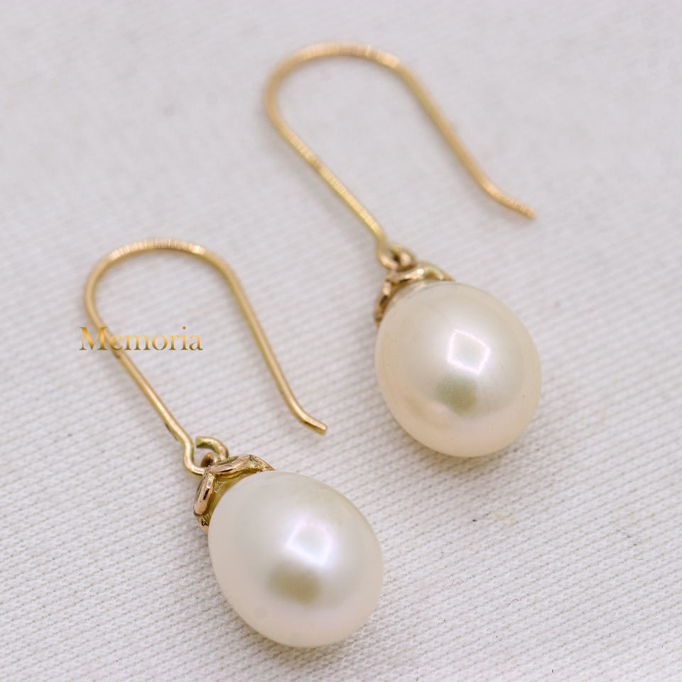 อัญมณีไข่มุกน้ำจืดธรรมชาติ14K ต่างหูห้อยทำด้วยมือทำจากทองคำสีเหลืองเข้มขายส่ง