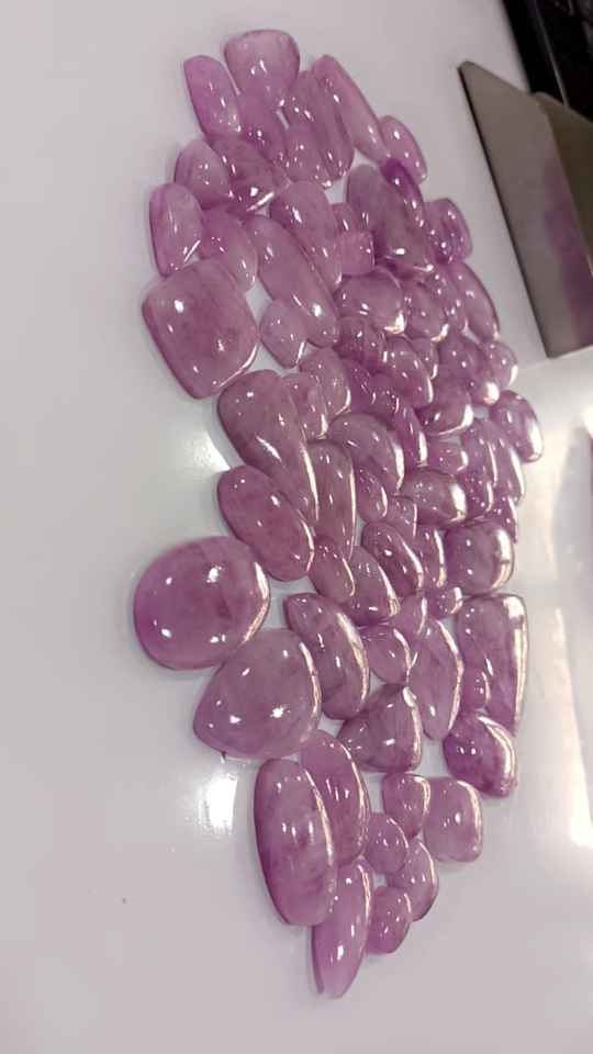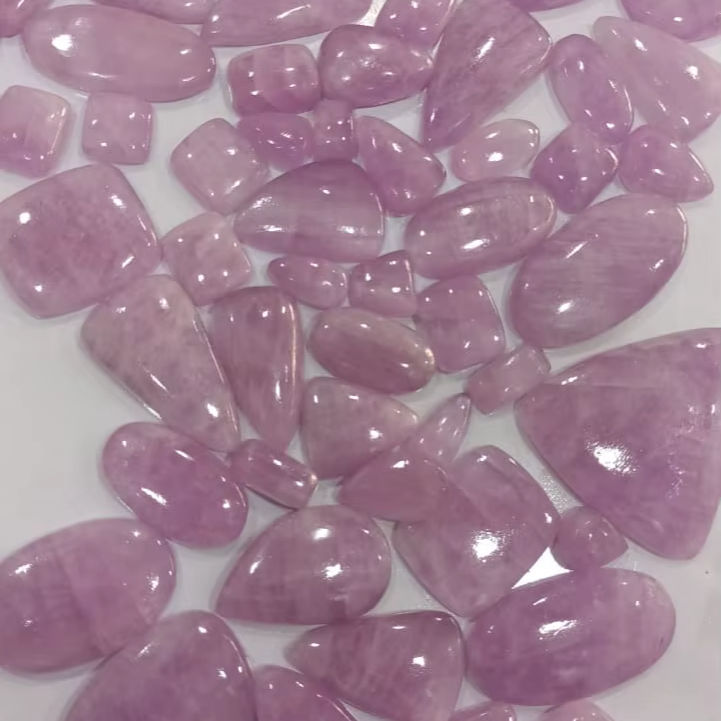 Kunzite Cabochon อัญมณีหลวมรูปร่างผสมขัดเงาเรียบสีชมพูธรรมชาติที่สวยงามราคาสำหรับเครื่องประดับขายส่ง