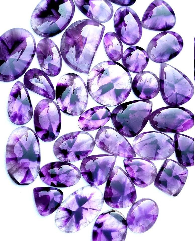 พลอยสีม่วงธรรมชาติที่สวยงามทรงรีเรียบอัญมณีทรงหลวมตัดฟรีไซส์สำหรับทำเครื่องประดับจากผู้จำหน่าย