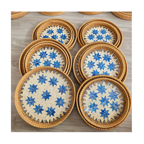 ถาดหวายธรรมชาติที่สวยงามแม่ของการฝังมุกทำด้วยมือในเวียดนามเหมาะสำหรับการตกแต่งเสิร์ฟและการตกแต่งบนโต๊ะที่หรูหรา