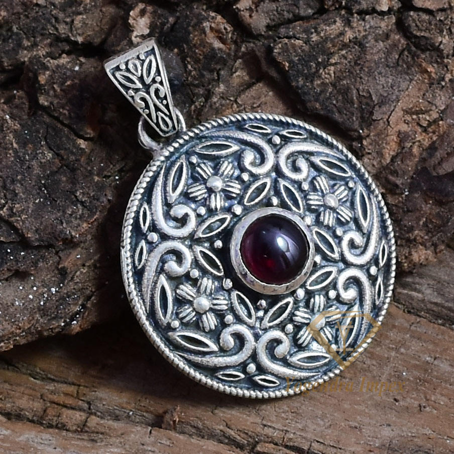 อัญมณีโกเมนสีแดงธรรมชาติที่สวยงาม925จี้เงินสเตอร์ลิงเครื่องประดับออกซิไดซ์สำหรับงานแต่งงานส่งตรงจากผู้ผลิต