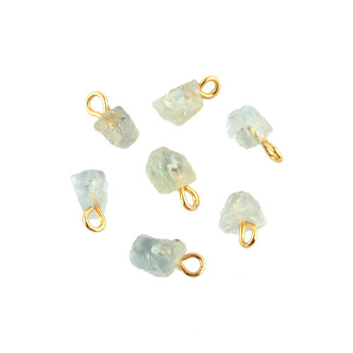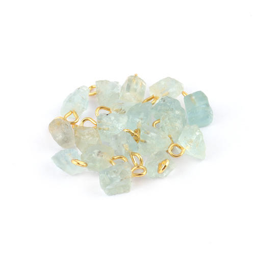 พลอยอะความารีนแบบหยาบธรรมชาติที่สวยงามตัวเชื่อมต่อแบบ DIY สำหรับการประกันตัวเดียวสำหรับเดือนมีนาคมทำจากทอง/เงินอัญมณีชุบทองตามสั่ง