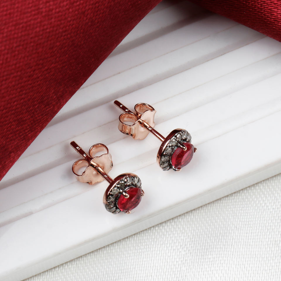ชื่อผลิตภัณฑ์:ต่างหูเม็ดเดี่ยวเงิน925อัญมณีทับทิมธรรมชาติและเพชร