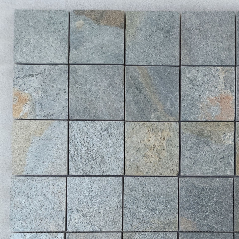 กระเบื้องโมเสคหินชนวนธรรมชาติที่สวยงามซีร่าสีเขียวสำหรับห้องครัวห้องน้ำและพื้นที่กลางแจ้ง