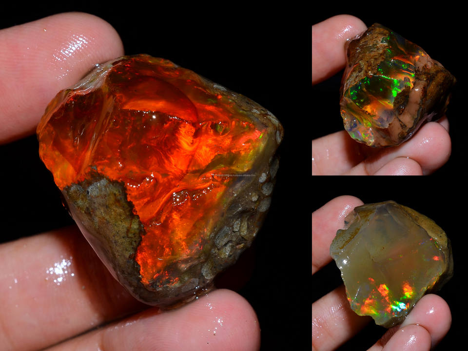 โอปอลเอธิโอเปียแบบหยาบ 3 ชิ้น คุณภาพเยี่ยม เกรดพรีเมียม 100% ธรรมชาติ แบบ Welo Fire Oily สำหรับทำเครื่องประดับ