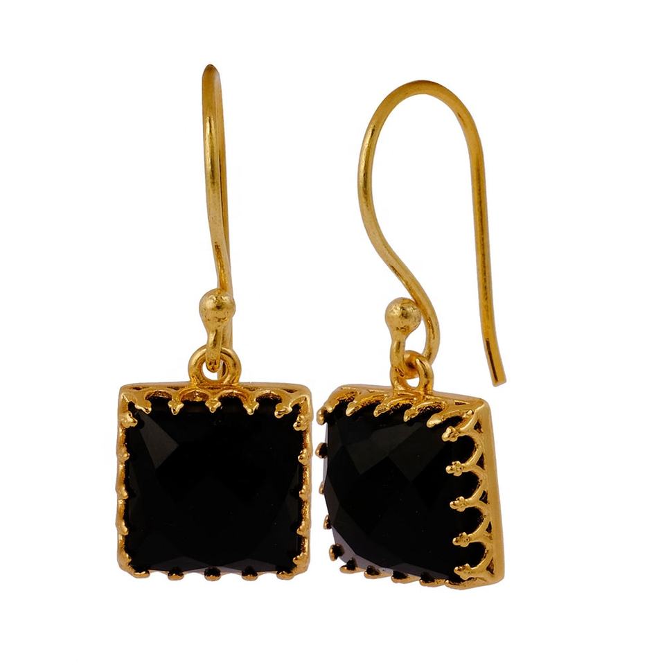 ต่างหูพลอยสีโอนิกซ์แบบตะขอเกี่ยวอัญมณีสวยงามต่างหูทองเหลืองชุบทองต่างหูแบบห้อยต่างหูคู่เครื่องประดับ