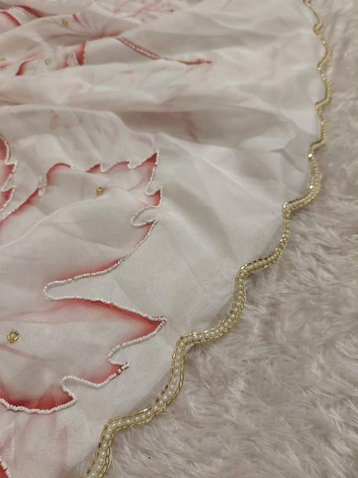 ชื่อผลิตภัณฑ์:ผ้าออร์แกนซ่าที่สวยงามพร้อมลายพิมพ์และสารีงานด้วยมือ