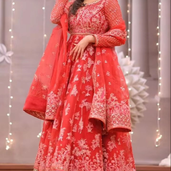 ชุดเดรสยาวผ้าไหมของผู้หญิงปากีสถานที่สวยงามพิมพ์ลายดิจิตอลงานปักงานเย็บปักถักร้อย lehenga choli ขนาดใหญ่พิเศษ