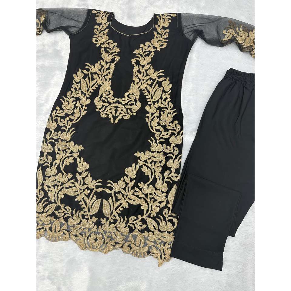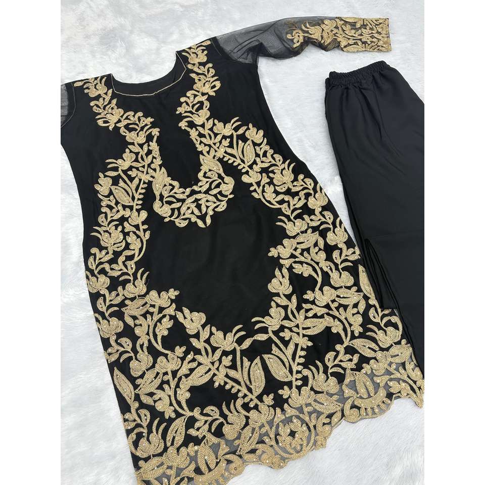 ชุดปาร์ตี้สวยงาม เสื้อและกางเกงผ้าชีฟองประดับมุก ไซส์ XL